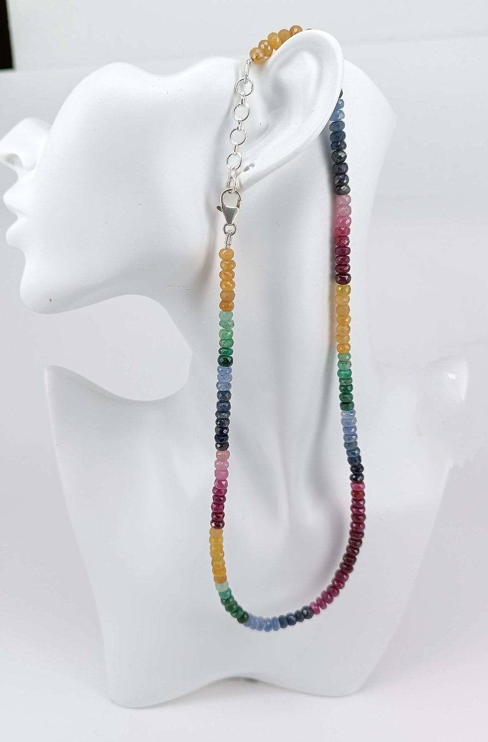 Edelsteinkette Saphir - facettiert bunt scheibenförmig